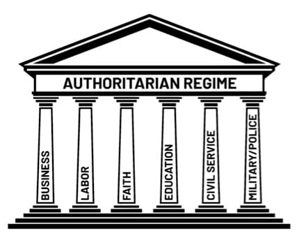 Each of us is part of one or more pillars, and so long as any of us just goes about our lives because we are ‘comfortable enough,’ we are complicit with the autocrat, and, frankly, a disappointment as an American.